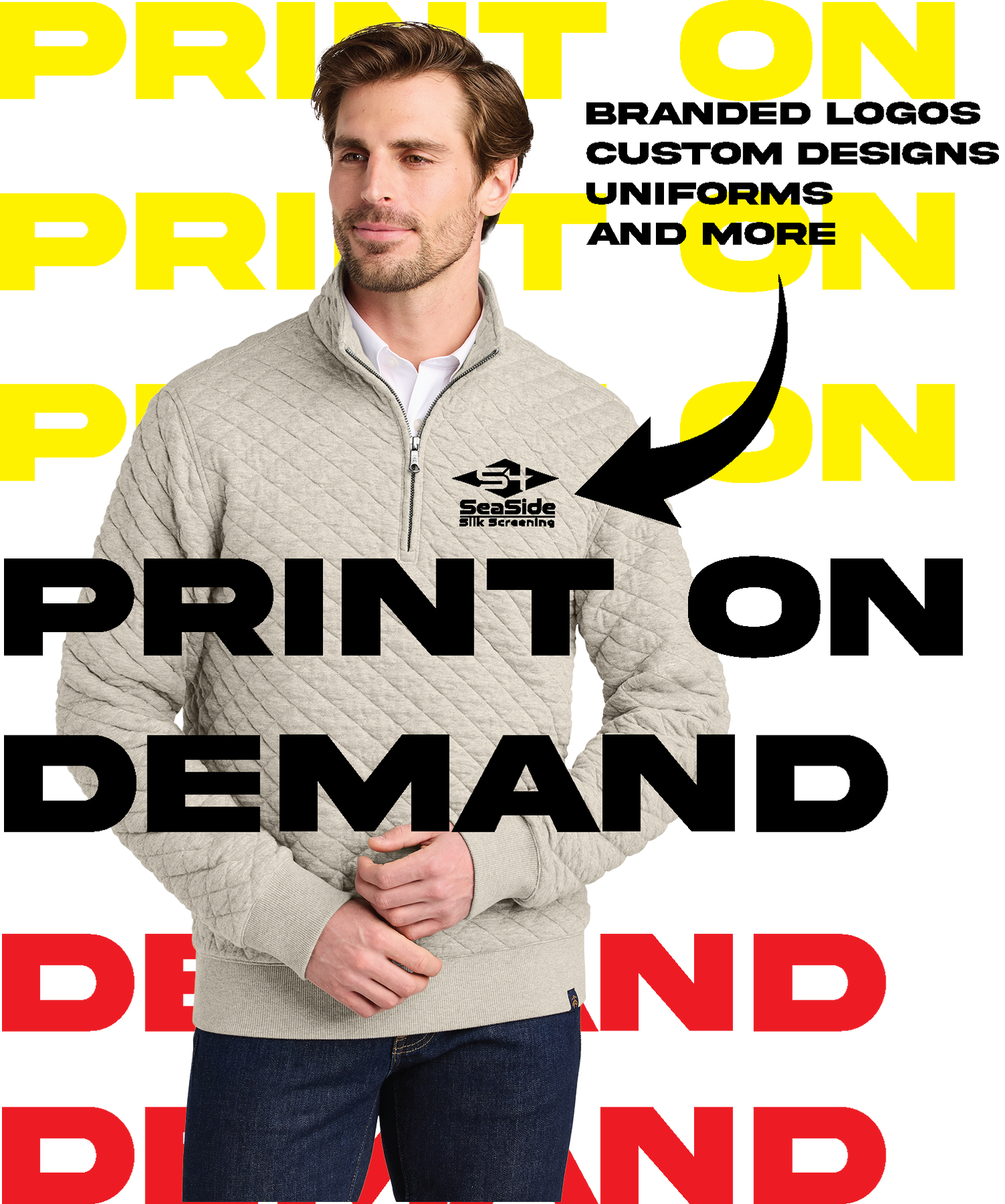 POD utilizes our cutting edge digital printing process allowing as little as 1 item to be decorated immediately. Gone are the days of the past with "ganging order up".